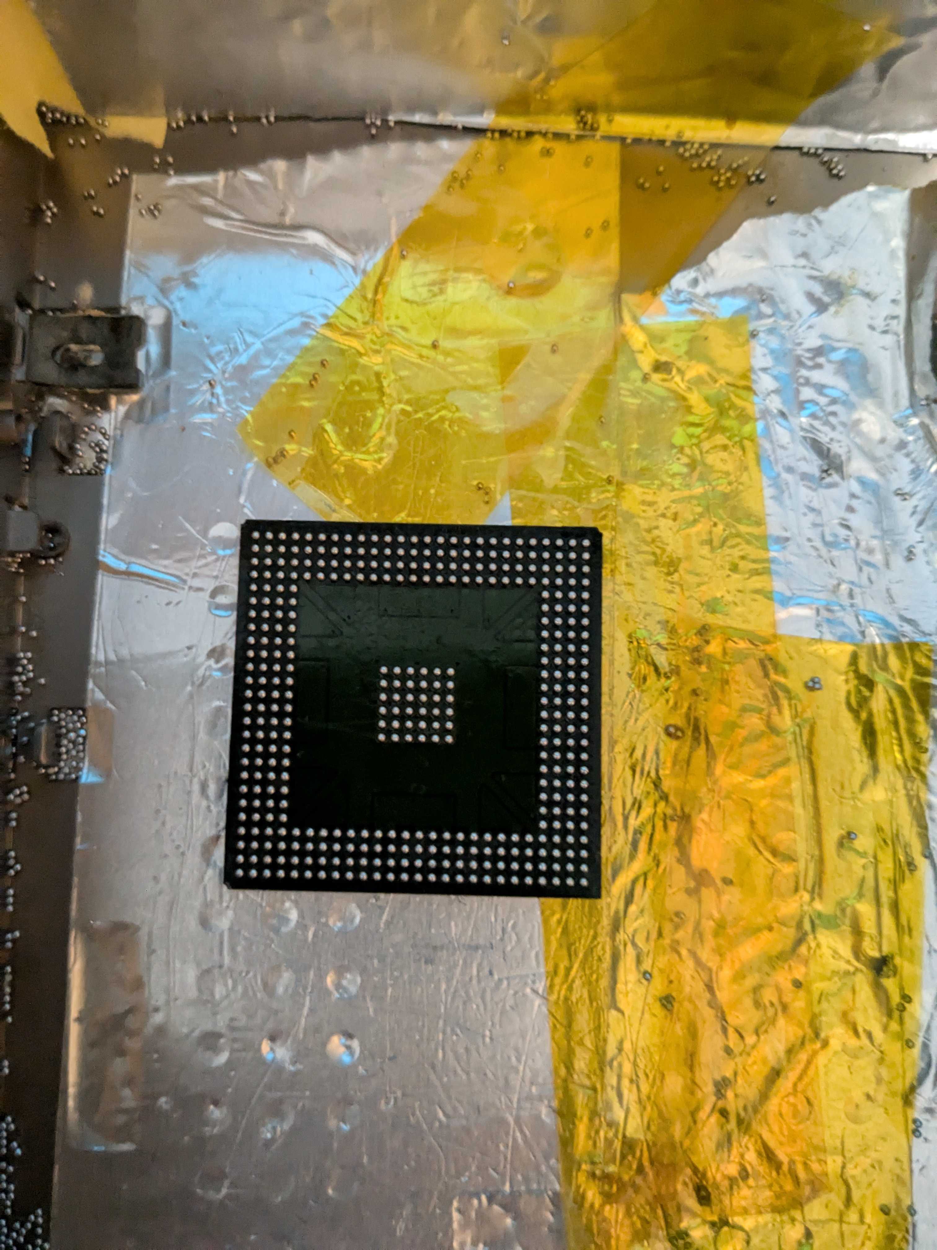 So, I pulled that chip back off, and practiced reballing it as the chips I've been reballing before were all ceramic BGA chips (PowerPC processors) rather than plastic BGA chips, which are susceptible to popcorning if not handled correctly.