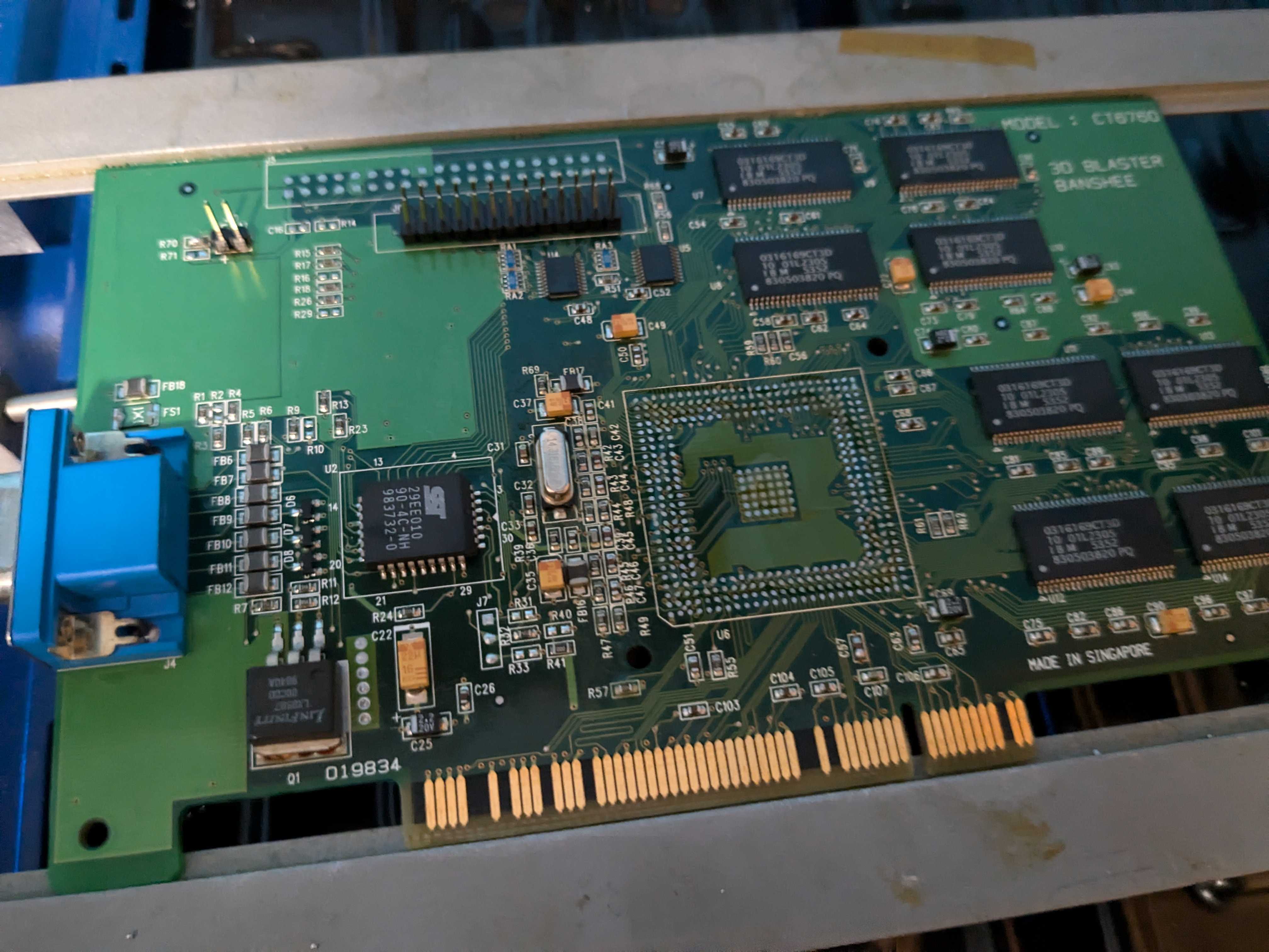 This weekend, I reballed the PCI Creative Blaster 3DFX Voodoo Banshee a colleague gave me to try and fix.